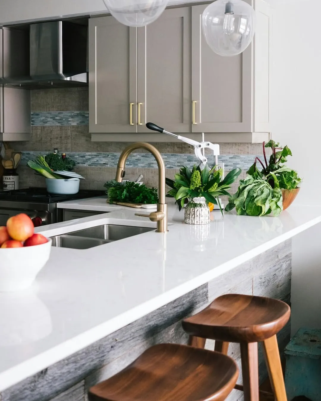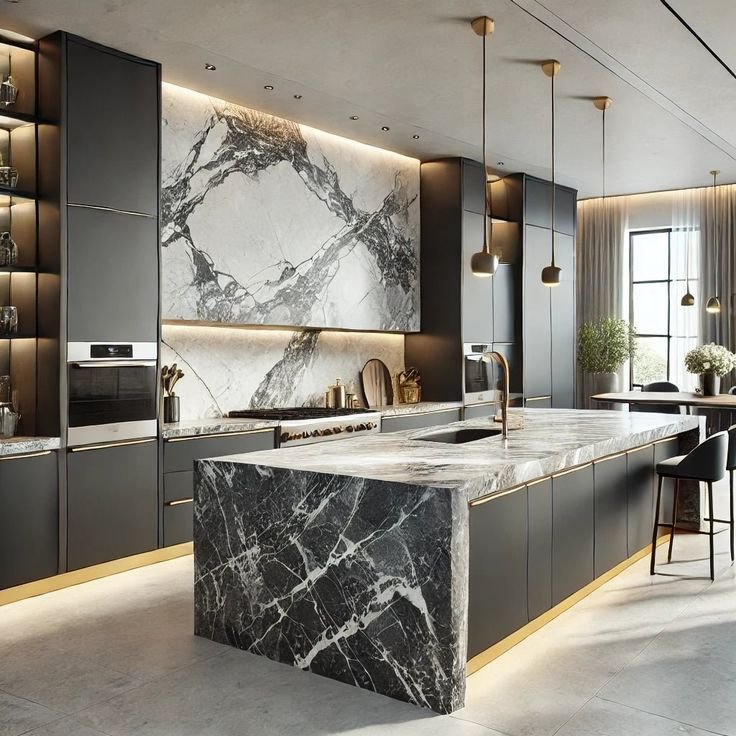 Select from high-end cabinetry, luxury quartz or quartzite countertops, designer tiles, custom range hoods, and statement hardware.